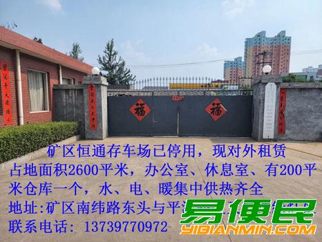 原矿区恒通存车场已停用,先对外租赁,占地面积2600平米,办公室,休息室,有200平米仓库一个,水,电,暖集中供热齐全。地址:井陉矿区南纬路东头与平涉路交叉口红绿灯处